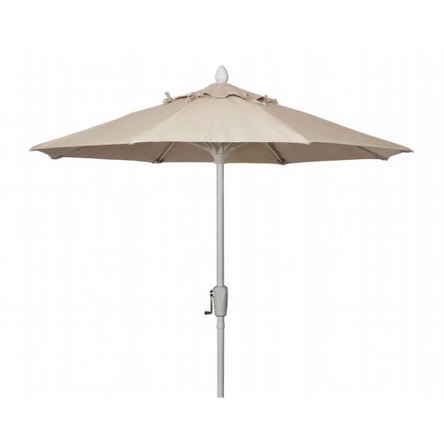 7.5' Octagon Market 8 Rib Crank Lift White Frame with Antique Beige Marine Grade Solution Dyed Acrylic Canopy. The popular FiberBuilt Market umbrella has contract grade components (a thicker wall thickness on the 1.5" diameter pole, 0.5" fiberglass ribs, marine grade solution dyed acrylic canopy) that work beautifully in backyard patios and condominium pools, as well as restaurants, hotels, and other commercial and hospitality locations. These residential/contract grade umbrellas provide years of durable service and a choice of fabrics and finishes. The Market umbrellas can be used both in-table and freestanding. The 100% solution-dyed acrylic canopy has excellent UV resistance to sunlight. It is easy to clean, and resistant to stains, water, fading, mold, and mildew. The Market umbrellas can be used for both in-table and freestanding applications. 8 flexible fiberglass ribs with molded nylon joints, hubs, and end tips. The 1.5" diameter two piece aluminum pole with a .080" wall thickness is available with crank, with or without tilt, manual push up, or pulley pin lift.