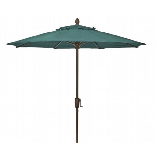 7.5' Octagon Market 8 Rib Crank Lift Champagne Bronze Frame with Forest Green Marine Grade Solution Dyed Acrylic Canopy. The popular FiberBuilt Market umbrella has contract grade components (a thicker wall thickness on the 1.5" diameter pole, 0.5" fiberglass ribs, marine grade solution dyed acrylic canopy) that work beautifully in backyard patios and condominium pools, as well as restaurants, hotels, and other commercial and hospitality locations. These residential/contract grade umbrellas provide years of durable service and a choice of fabrics and finishes. The Market umbrellas can be used both in-table and freestanding. The 100% solution-dyed acrylic canopy has excellent UV resistance to sunlight. It is easy to clean, and resistant to stains, water, fading, mold, and mildew. The Market umbrellas can be used for both in-table and freestanding applications. 8 flexible fiberglass ribs with molded nylon joints, hubs, and end tips. The 1.5" diameter two piece aluminum pole with a .080" wall thickness is available with crank, with or without tilt, manual push up, or pulley pin lift.