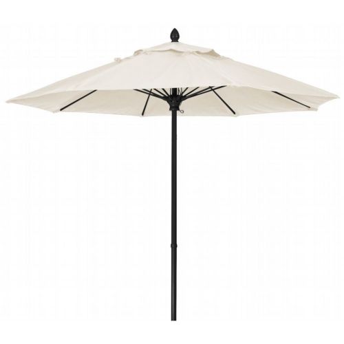 7.5' Octagon Market 8 Rib Push Up & Pin Lift Black Frame with Natural White Marine Grade Solution Dyed Acrylic Canopy. The popular FiberBuilt Market umbrella has contract grade components (a thicker wall thickness on the 1.5" diameter pole, 0.5" fiberglass ribs, marine grade solution dyed acrylic canopy) that work beautifully in backyard patios and condominium pools, as well as restaurants, hotels, and other commercial and hospitality locations. These residential/contract grade umbrellas provide years of durable service and a choice of fabrics and finishes. The Market umbrellas can be used both in-table and freestanding. The 100% solution-dyed acrylic canopy has excellent UV resistance to sunlight. It is easy to clean, and resistant to stains, water, fading, mold, and mildew. The Market umbrellas can be used for both in-table and freestanding applications. 8 flexible fiberglass ribs with molded nylon joints, hubs, and end tips. The 1.5" diameter two piece aluminum pole with a .080" wall thickness is available with crank, with or without tilt, manual push up, or pulley pin lift.