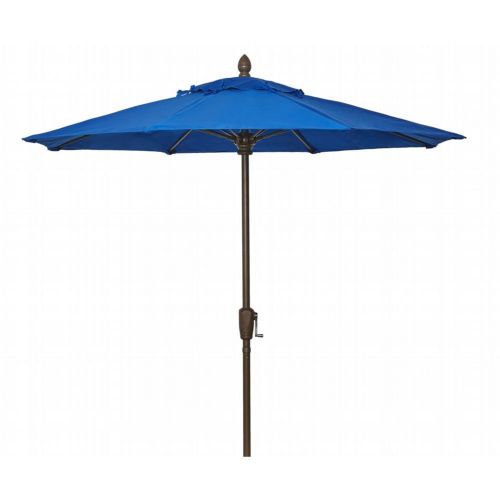 7.5' Octagon Market 8 Rib Crank Lift Champagne Bronze Frame with Pacific Blue Marine Grade Solution Dyed Acrylic Canopy. The popular FiberBuilt Market umbrella has contract grade components (a thicker wall thickness on the 1.5" diameter pole, 0.5" fiberglass ribs, marine grade solution dyed acrylic canopy) that work beautifully in backyard patios and condominium pools, as well as restaurants, hotels, and other commercial and hospitality locations. These residential/contract grade umbrellas provide years of durable service and a choice of fabrics and finishes. The Market umbrellas can be used both in-table and freestanding. The 100% solution-dyed acrylic canopy has excellent UV resistance to sunlight. It is easy to clean, and resistant to stains, water, fading, mold, and mildew. The Market umbrellas can be used for both in-table and freestanding applications. 8 flexible fiberglass ribs with molded nylon joints, hubs, and end tips. The 1.5" diameter two piece aluminum pole with a .080" wall thickness is available with crank, with or without tilt, manual push up, or pulley pin lift.