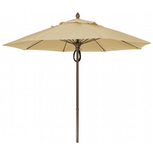 9' Octagon Market 8 Rib Pulley & Pin Lift Champagne Bronze Frame with Antique Beige Marine Grade Solution Dyed Acrylic Canopy. The popular FiberBuilt Market umbrella has contract grade components (a thicker wall thickness on the 1.5" diameter pole, 0.5" fiberglass ribs, marine grade solution dyed acrylic canopy) that work beautifully in backyard patios and condominium pools, as well as restaurants, hotels, and other commercial and hospitality locations. These residential/contract grade umbrellas provide years of durable service and a choice of fabrics and finishes. The Market umbrellas can be used both in-table and freestanding. The 100% solution-dyed acrylic canopy has excellent UV resistance to sunlight. It is easy to clean, and resistant to stains, water, fading, mold, and mildew. The Market umbrellas can be used for both in-table and freestanding applications. 8 flexible fiberglass ribs with molded nylon joints, hubs, and end tips. The 1.5" diameter two piece aluminum pole with a .080" wall thickness is available with crank, with or without tilt, manual push up, or pulley pin lift.