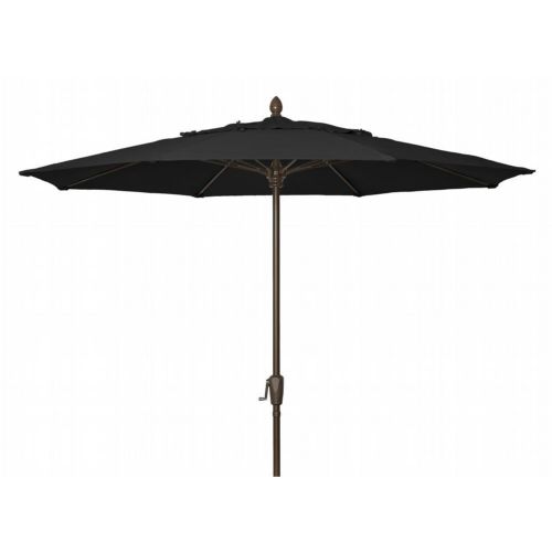 9' Octagon Market 8 Rib Crank Lift Champagne Bronze Frame with Black Marine Grade Solution Dyed Acrylic Canopy. The popular FiberBuilt Market umbrella has contract grade components (a thicker wall thickness on the 1.5" diameter pole, 0.5" fiberglass ribs, marine grade solution dyed acrylic canopy) that work beautifully in backyard patios and condominium pools, as well as restaurants, hotels, and other commercial and hospitality locations. These residential/contract grade umbrellas provide years of durable service and a choice of fabrics and finishes. The Market umbrellas can be used both in-table and freestanding. The 100% solution-dyed acrylic canopy has excellent UV resistance to sunlight. It is easy to clean, and resistant to stains, water, fading, mold, and mildew. The Market umbrellas can be used for both in-table and freestanding applications. 8 flexible fiberglass ribs with molded nylon joints, hubs, and end tips. The 1.5" diameter two piece aluminum pole with a .080" wall thickness is available with crank, with or without tilt, manual push up, or pulley pin lift.