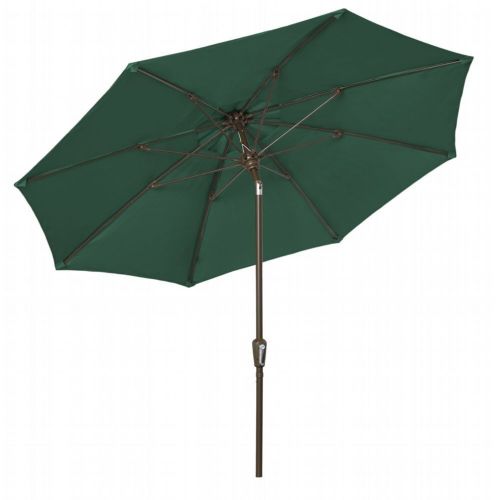 9' Octagon Market 8 Rib Crank Lift & Push Button Tilt Champagne Bronze Frame with Forest Green Marine Grade Solution Dyed Acrylic Canopy. The popular FiberBuilt Market umbrella has contract grade components (a thicker wall thickness on the 1.5" diameter pole, 0.5" fiberglass ribs, marine grade solution dyed acrylic canopy) that work beautifully in backyard patios and condominium pools, as well as restaurants, hotels, and other commercial and hospitality locations. These residential/contract grade umbrellas provide years of durable service and a choice of fabrics and finishes. The Market umbrellas can be used both in-table and freestanding. The 100% solution-dyed acrylic canopy has excellent UV resistance to sunlight. It is easy to clean, and resistant to stains, water, fading, mold, and mildew. The Market umbrellas can be used for both in-table and freestanding applications. 8 flexible fiberglass ribs with molded nylon joints, hubs, and end tips. The 1.5" diameter two piece aluminum pole with a .080" wall thickness is available with crank, with or without tilt, manual push up, or pulley pin lift.