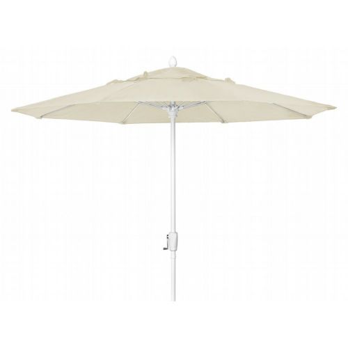 9' Octagon Market 8 Rib Crank Lift White Frame with Natural White Marine Grade Solution Dyed Acrylic Canopy. The popular FiberBuilt Market umbrella has contract grade components (a thicker wall thickness on the 1.5" diameter pole, 0.5" fiberglass ribs, marine grade solution dyed acrylic canopy) that work beautifully in backyard patios and condominium pools, as well as restaurants, hotels, and other commercial and hospitality locations. These residential/contract grade umbrellas provide years of durable service and a choice of fabrics and finishes. The Market umbrellas can be used both in-table and freestanding. The 100% solution-dyed acrylic canopy has excellent UV resistance to sunlight. It is easy to clean, and resistant to stains, water, fading, mold, and mildew. The Market umbrellas can be used for both in-table and freestanding applications. 8 flexible fiberglass ribs with molded nylon joints, hubs, and end tips. The 1.5" diameter two piece aluminum pole with a .080" wall thickness is available with crank, with or without tilt, manual push up, or pulley pin lift.