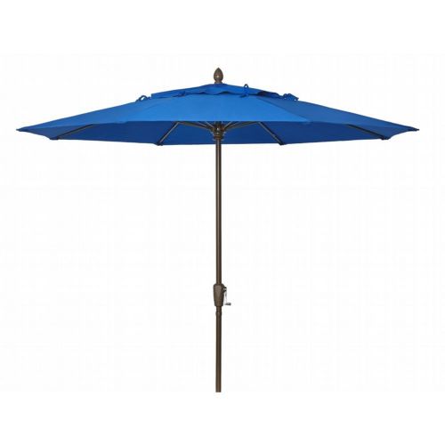 9' Octagon Market 8 Rib Crank Lift Champagne Bronze Frame with Pacific Blue Marine Grade Solution Dyed Acrylic Canopy. The popular FiberBuilt Market umbrella has contract grade components (a thicker wall thickness on the 1.5" diameter pole, 0.5" fiberglass ribs, marine grade solution dyed acrylic canopy) that work beautifully in backyard patios and condominium pools, as well as restaurants, hotels, and other commercial and hospitality locations. These residential/contract grade umbrellas provide years of durable service and a choice of fabrics and finishes. The Market umbrellas can be used both in-table and freestanding. The 100% solution-dyed acrylic canopy has excellent UV resistance to sunlight. It is easy to clean, and resistant to stains, water, fading, mold, and mildew. The Market umbrellas can be used for both in-table and freestanding applications. 8 flexible fiberglass ribs with molded nylon joints, hubs, and end tips. The 1.5" diameter two piece aluminum pole with a .080" wall thickness is available with crank, with or without tilt, manual push up, or pulley pin lift.