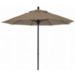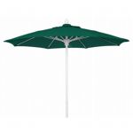 9' Octagon Market 8 Rib Pulley & Pin Lift White Frame with Pacific Blue Marine Grade Solution Dyed Acrylic Canopy. The popular FiberBuilt Market umbrella has contract grade components (a thicker wall thickness on the 1.5" diameter pole, 0.5" fiberglass ribs, marine grade solution dyed acrylic canopy) that work beautifully in backyard patios and condominium pools, as well as restaurants, hotels, and other commercial and hospitality locations. These residential/contract grade umbrellas provide years of durable service and a choice of fabrics and finishes. The Market umbrellas can be used both in-table and freestanding. The 100% solution-dyed acrylic canopy has excellent UV resistance to sunlight. It is easy to clean, and resistant to stains, water, fading, mold, and mildew. The Market umbrellas can be used for both in-table and freestanding applications. 8 flexible fiberglass ribs with molded nylon joints, hubs, and end tips. The 1.5" diameter two piece aluminum pole with a .080" wall thickness is available with crank, with or without tilt, manual push up, or pulley pin lift.