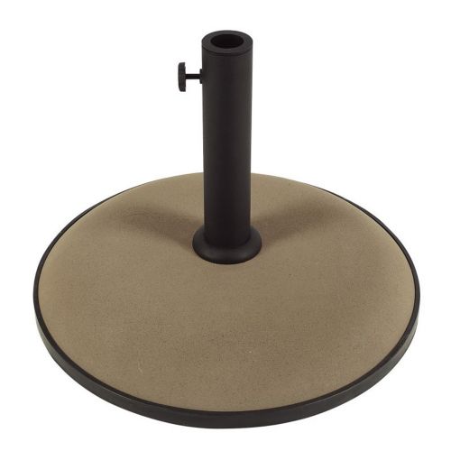Heavy duty 50 lbs. patio market umbrella base. Steel base with concrete top. Made for use with 7 to 9 feet umbrellas. Black trim and black sleeve. Standard sleeve accomodates 1.5" and 1.75" poles. Simple assembly for the sleeve only.