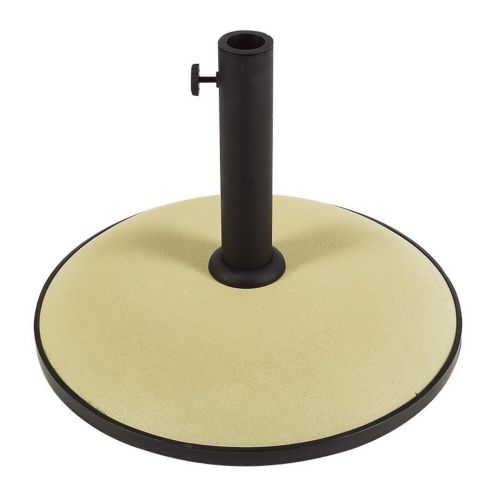 Heavy duty 50 lbs. patio market umbrella base. Steel base with concrete top. Made for use with 7 to 9 feet umbrellas. Black trim and black sleeve. Standard sleeve accomodates 1.5" and 1.75" poles. Simple assembly for the sleeve only.