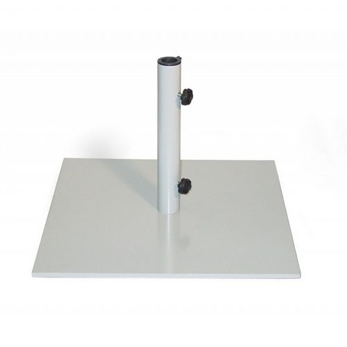 Steel 70 lbs. base for use with 6 and 7 feet umbrellas. Accommodates pole diameter up to 1 ⅝ inches. Heavy duty steel base is powder coated with white finish. Dimensions: 19 inch × 19inch with 13 inches height.