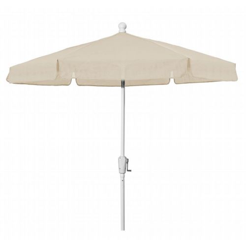 7.5' Hexagon Garden Tilt Umbrella 6 Rib Crank Lift & Push Button Tilt White Frame with Valance Style Canopy in Beige Vinyl Coated Weave. Designed with the home in mind, FiberBuilt's Garden Umbrella provides years of shaded comfort for your backyard patio, garden, or pool area. These light-duty, budget-friendly umbrellas can be used both in-table and freestanding. They are not designed for high wind locations or for commercial use. The valance style canopy is hexagonal in shape, available in 10 colors, and made of a durable Vinyl coated weave that partially protects from harmful sun rays. Features 6 flexible fiberglass ribs with molded nylon joints, hubs, and end tips that improve the umbrella's performance during adverse weather conditions.
