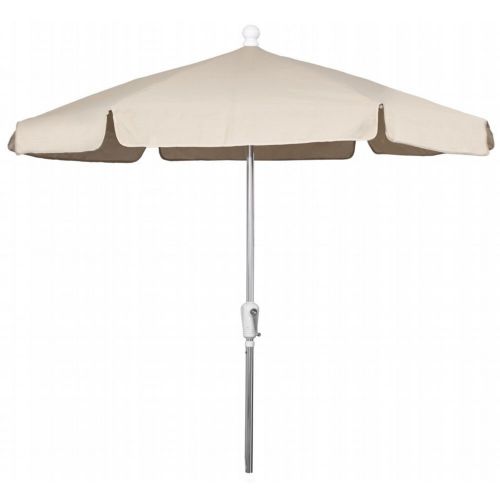 7.5' Hexagon Garden Umbrella 6 Rib Crank Lift Bright Aluminum Frame with Valance Style Canopy in Beige Vinyl Coated Mesh Weave. Designed with the home in mind, FiberBuilt's Garden Umbrella provides years of shaded comfort for your backyard patio, garden, or pool area. These light-duty, budget-friendly umbrellas can be used both in-table and freestanding. They are not designed for high wind locations or for commercial use. The valance style canopy is hexagonal in shape, available in 10 colors, and made of a durable Vinyl coated weave that partially protects from harmful sun rays. Features 6 flexible fiberglass ribs with molded nylon joints, hubs, and end tips that improve the umbrella's performance during adverse weather conditions.