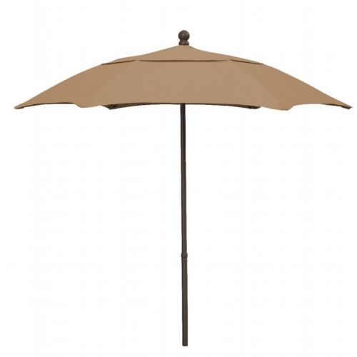 7.5' Hexagon Patio Umbrella 6 Rib Push Up & Pin Lift Champagne Bronze Frame with Beige Solution Dyed Poly Canopy. Designed for residential use, FiberBuilt's Patio Umbrella provides durable shaded comfort for your backyard patio, garden, or pool area. These light-duty, budget-friendly umbrellas can be used both in-table and freestanding. They are not designed for high wind locations or for commercial use. The Market style solution dyed poly canopy is available in 6 colors and has excellent UV resistance to sunlight. Features 6 flexible fiberglass ribs with molded nylon joints, hubs, and end tips that improve the umbrella's performance during adverse weather conditions.