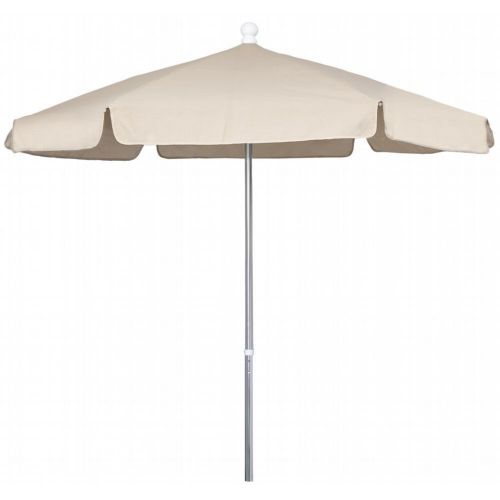 7.5' Hexagon Garden Umbrella 6 Rib Push Up & Pin Lift Bright Aluminum Frame with Valance Style Canopy in Beige Vinyl Coated Weave. Designed with the home in mind, FiberBuilt's Garden Umbrella provides years of shaded comfort for your backyard patio, garden, or pool area. These light-duty, budget-friendly umbrellas can be used both in-table and freestanding. They are not designed for high wind locations or for commercial use. The valance style canopy is hexagonal in shape, available in 10 colors, and made of a durable Vinyl coated weave that partially protects from harmful sun rays. Features 6 flexible fiberglass ribs with molded nylon joints, hubs, and end tips that improve the umbrella's performance during adverse weather conditions.