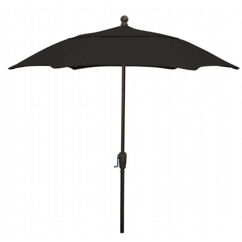 7.5' Hexagon Patio Umbrella 6 Rib Crank Lift Champagne Bronze Frame with Black Solution Dyed Poly Canopy. Designed for residential use, FiberBuilt's Patio Umbrella provides durable shaded comfort for your backyard patio, garden, or pool area. These light-duty, budget-friendly umbrellas can be used both in-table and freestanding. They are not designed for high wind locations or for commercial use. The Market style solution dyed poly canopy is available in 6 colors and has excellent UV resistance to sunlight. Features 6 flexible fiberglass ribs with molded nylon joints, hubs, and end tips that improve the umbrella's performance during adverse weather conditions.