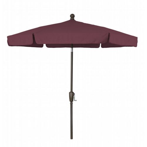 7.5' Hexagon Garden Tilt Umbrella 6 Rib Crank Lift & Push Button Tilt Champagne Bronze Frame with Valance Style Canopy in Burgundy Vinyl Coated Weave. Designed with the home in mind, FiberBuilt's Garden Umbrella provides years of shaded comfort for your backyard patio, garden, or pool area. These light-duty, budget-friendly umbrellas can be used both in-table and freestanding. They are not designed for high wind locations or for commercial use. The valance style canopy is hexagonal in shape, available in 10 colors, and made of a durable Vinyl coated weave that partially protects from harmful sun rays. Features 6 flexible fiberglass ribs with molded nylon joints, hubs, and end tips that improve the umbrella's performance during adverse weather conditions.