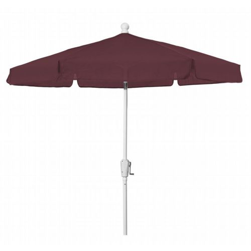 7.5' Hexagon Garden Tilt Umbrella 6 Rib Crank Lift & Push Button Tilt White Frame with Valance Style Canopy in Burgundy Vinyl Coated Weave. Designed with the home in mind, FiberBuilt's Garden Umbrella provides years of shaded comfort for your backyard patio, garden, or pool area. These light-duty, budget-friendly umbrellas can be used both in-table and freestanding. They are not designed for high wind locations or for commercial use. The valance style canopy is hexagonal in shape, available in 10 colors, and made of a durable Vinyl coated weave that partially protects from harmful sun rays. Features 6 flexible fiberglass ribs with molded nylon joints, hubs, and end tips that improve the umbrella's performance during adverse weather conditions.