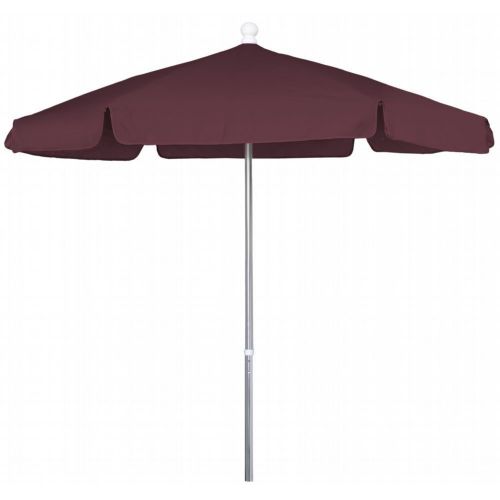 7.5' Hexagon Garden Umbrella 6 Rib Push Up & Pin Lift Bright Aluminum Frame with Valance Style Canopy in Burgundy Vinyl Coated Weave. Designed with the home in mind, FiberBuilt's Garden Umbrella provides years of shaded comfort for your backyard patio, garden, or pool area. These light-duty, budget-friendly umbrellas can be used both in-table and freestanding. They are not designed for high wind locations or for commercial use. The valance style canopy is hexagonal in shape, available in 10 colors, and made of a durable Vinyl coated weave that partially protects from harmful sun rays. Features 6 flexible fiberglass ribs with molded nylon joints, hubs, and end tips that improve the umbrella's performance during adverse weather conditions.
