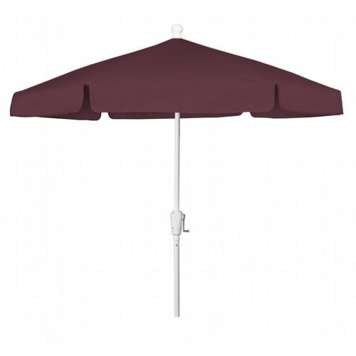 7.5' Hexagon Garden Umbrella 6 Rib Crank Lift White Frame with Valance Style Canopy in Burgundy Vinyl Coated Weave. Designed with the home in mind, FiberBuilt's Garden Umbrella provides years of shaded comfort for your backyard patio, garden, or pool area. These light-duty, budget-friendly umbrellas can be used both in-table and freestanding. They are not designed for high wind locations or for commercial use. The valance style canopy is hexagonal in shape, available in 10 colors, and made of a durable Vinyl coated weave that partially protects from harmful sun rays. Features 6 flexible fiberglass ribs with molded nylon joints, hubs, and end tips that improve the umbrella's performance during adverse weather conditions.