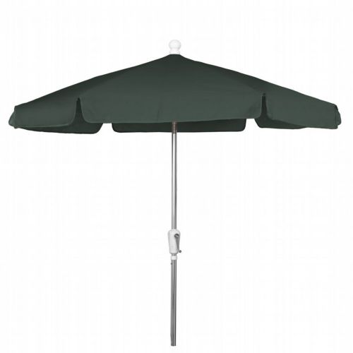 7.5' Hexagon Garden Umbrella 6 Rib Crank Lift & Push Button Tilt Bright Aluminum Frame with Valance Style Canopy in Forest Green Vinyl Coated Weave. Designed with the home in mind, FiberBuilt's Garden Umbrella provides years of shaded comfort for your backyard patio, garden, or pool area. These light-duty, budget-friendly umbrellas can be used both in-table and freestanding. They are not designed for high wind locations or for commercial use. The valance style canopy is hexagonal in shape, available in 10 colors, and made of a durable Vinyl coated weave that partially protects from harmful sun rays. Features 6 flexible fiberglass ribs with molded nylon joints, hubs, and end tips that improve the umbrella's performance during adverse weather conditions.