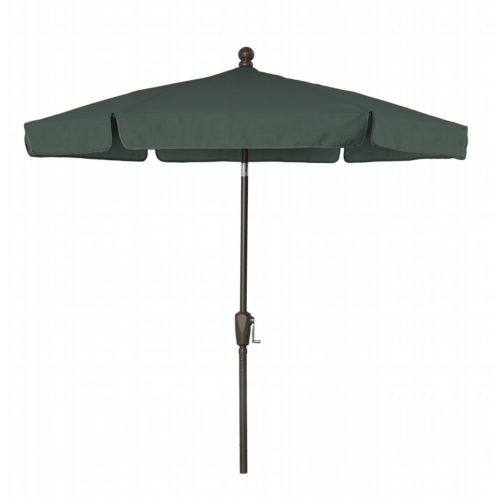 7.5' Hexagon Garden Tilt Umbrella 6 Rib Crank Lift & Push Button Tilt Champagne Bronze Frame with Valance Style Canopy in Forest Green Vinyl Coated Weave. Designed with the home in mind, FiberBuilt's Garden Umbrella provides years of shaded comfort for your backyard patio, garden, or pool area. These light-duty, budget-friendly umbrellas can be used both in-table and freestanding. They are not designed for high wind locations or for commercial use. The valance style canopy is hexagonal in shape, available in 10 colors, and made of a durable Vinyl coated weave that partially protects from harmful sun rays. Features 6 flexible fiberglass ribs with molded nylon joints, hubs, and end tips that improve the umbrella's performance during adverse weather conditions.