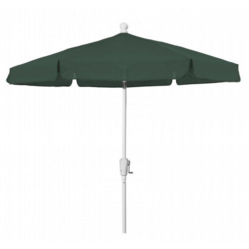 7.5' Hexagon Garden Tilt Umbrella 6 Rib Crank Lift & Push Button Tilt White Frame with Valance Style Canopy in Forest Green Vinyl Coated Weave. Designed with the home in mind, FiberBuilt's Garden Umbrella provides years of shaded comfort for your backyard patio, garden, or pool area. These light-duty, budget-friendly umbrellas can be used both in-table and freestanding. They are not designed for high wind locations or for commercial use. The valance style canopy is hexagonal in shape, available in 10 colors, and made of a durable Vinyl coated weave that partially protects from harmful sun rays. Features 6 flexible fiberglass ribs with molded nylon joints, hubs, and end tips that improve the umbrella's performance during adverse weather conditions.