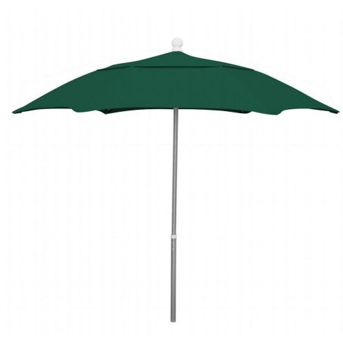 7.5' Hexagon Patio Umbrella 6 Rib Push Up & Pin Lift Bright Aluminum Frame with Forest Green Solution Dyed Poly Canopy. Designed for residential use, FiberBuilt's Patio Umbrella provides durable shaded comfort for your backyard patio, garden, or pool area. These light-duty, budget-friendly umbrellas can be used both in-table and freestanding. They are not designed for high wind locations or for commercial use. The Market style solution dyed poly canopy is available in 6 colors and has excellent UV resistance to sunlight. Features 6 flexible fiberglass ribs with molded nylon joints, hubs, and end tips that improve the umbrella's performance during adverse weather conditions.