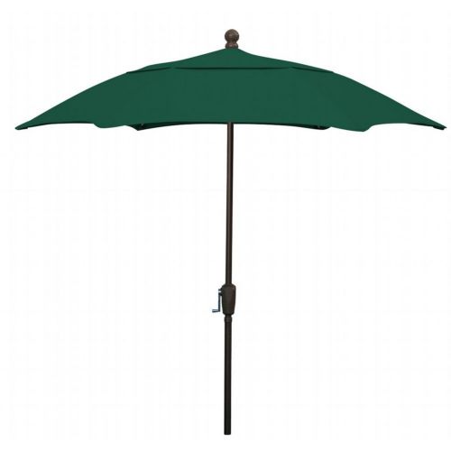 7.5' Hexagon Patio Umbrella 6 Rib Crank Lift Champagne Bronze Frame with Forest Green Solution Dyed Poly Canopy. Designed for residential use, FiberBuilt's Patio Umbrella provides durable shaded comfort for your backyard patio, garden, or pool area. These light-duty, budget-friendly umbrellas can be used both in-table and freestanding. They are not designed for high wind locations or for commercial use. The Market style solution dyed poly canopy is available in 6 colors and has excellent UV resistance to sunlight. Features 6 flexible fiberglass ribs with molded nylon joints, hubs, and end tips that improve the umbrella's performance during adverse weather conditions.