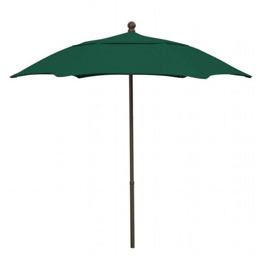 7.5' Hexagon Patio Umbrella 6 Rib Push Up & Pin Lift Champagne Bronze Frame with Forest Green Solution Dyed Poly Canopy. Designed for residential use, FiberBuilt's Patio Umbrella provides durable shaded comfort for your backyard patio, garden, or pool area. These light-duty, budget-friendly umbrellas can be used both in-table and freestanding. They are not designed for high wind locations or for commercial use. The Market style solution dyed poly canopy is available in 6 colors and has excellent UV resistance to sunlight. Features 6 flexible fiberglass ribs with molded nylon joints, hubs, and end tips that improve the umbrella's performance during adverse weather conditions.