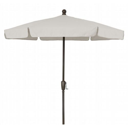 7.5' Hexagon Garden Umbrella 6 Rib Crank Lift Champagne Bronze Frame with Valance Style Canopy in Natural Vinyl Coated Weave. Designed with the home in mind, FiberBuilt's Garden Umbrella provides years of shaded comfort for your backyard patio, garden, or pool area. These light-duty, budget-friendly umbrellas can be used both in-table and freestanding. They are not designed for high wind locations or for commercial use. The valance style canopy is hexagonal in shape, available in 10 colors, and made of a durable Vinyl coated weave that partially protects from harmful sun rays. Features 6 flexible fiberglass ribs with molded nylon joints, hubs, and end tips that improve the umbrella's performance during adverse weather conditions.
