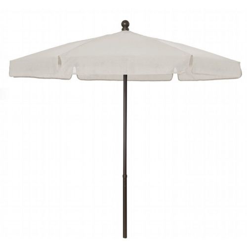 7.5' Hexagon Garden Umbrella 6 Rib Push Up & Pin Lift Champagne Bronze Frame with Valance Style Canopy in Natural Vinyl Coated Weave. Designed with the home in mind, FiberBuilt's Garden Umbrella provides years of shaded comfort for your backyard patio, garden, or pool area. These light-duty, budget-friendly umbrellas can be used both in-table and freestanding. They are not designed for high wind locations or for commercial use. The valance style canopy is hexagonal in shape, available in 10 colors, and made of a durable Vinyl coated weave that partially protects from harmful sun rays. Features 6 flexible fiberglass ribs with molded nylon joints, hubs, and end tips that improve the umbrella's performance during adverse weather conditions.