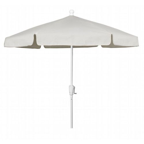 7.5' Hexagon Garden Umbrella 6 Rib Crank Lift White Frame with Valance Style Canopy in Natural Vinyl Coated Weave. Designed with the home in mind, FiberBuilt's Garden Umbrella provides years of shaded comfort for your backyard patio, garden, or pool area. These light-duty, budget-friendly umbrellas can be used both in-table and freestanding. They are not designed for high wind locations or for commercial use. The valance style canopy is hexagonal in shape, available in 10 colors, and made of a durable Vinyl coated weave that partially protects from harmful sun rays. Features 6 flexible fiberglass ribs with molded nylon joints, hubs, and end tips that improve the umbrella's performance during adverse weather conditions.