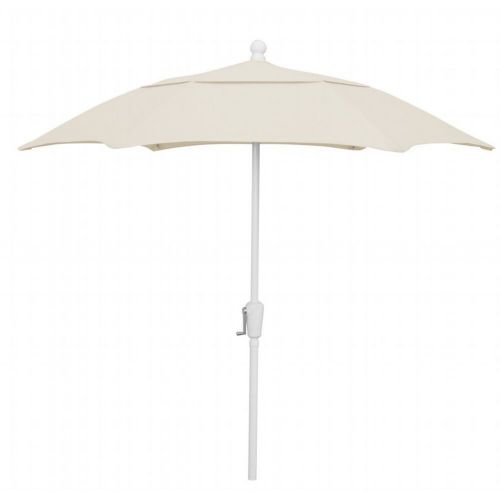 7.5' Hexagon Patio Umbrella 6 Rib Crank Lift White Frame with Natural Solution Dyed Poly Canopy. Designed for residential use, FiberBuilt's Patio Umbrella provides durable shaded comfort for your backyard patio, garden, or pool area. These light-duty, budget-friendly umbrellas can be used both in-table and freestanding. They are not designed for high wind locations or for commercial use. The Market style solution dyed poly canopy is available in 6 colors and has excellent UV resistance to sunlight. Features 6 flexible fiberglass ribs with molded nylon joints, hubs, and end tips that improve the umbrella's performance during adverse weather conditions.