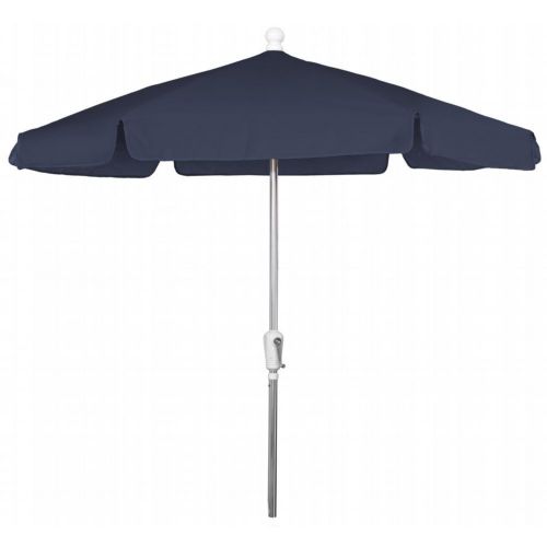 7.5' Hexagon Garden Umbrella 6 Rib Crank Lift Bright Aluminum Frame with Valance Style Canopy in Navy Blue Vinyl Coated Weave. Designed with the home in mind, FiberBuilt's Garden Umbrella provides years of shaded comfort for your backyard patio, garden, or pool area. These light-duty, budget-friendly umbrellas can be used both in-table and freestanding. They are not designed for high wind locations or for commercial use. The valance style canopy is hexagonal in shape, available in 10 colors, and made of a durable Vinyl coated weave that partially protects from harmful sun rays. Features 6 flexible fiberglass ribs with molded nylon joints, hubs, and end tips that improve the umbrella's performance during adverse weather conditions.