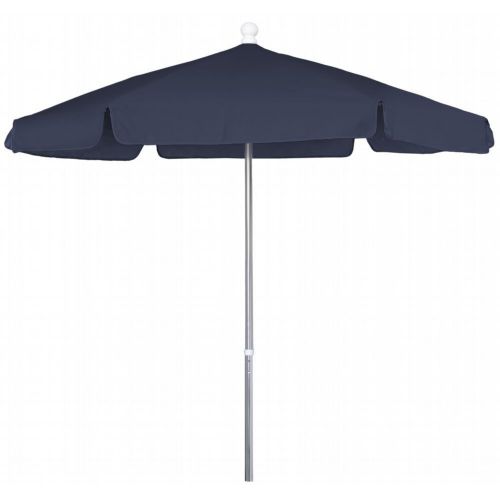 7.5' Hexagon Garden Umbrella 6 Rib Push Up & Pin Lift Bright Aluminum Frame with Valance Style Canopy in Navy Blue Vinyl Coated Weave. Designed with the home in mind, FiberBuilt's Garden Umbrella provides years of shaded comfort for your backyard patio, garden, or pool area. These light-duty, budget-friendly umbrellas can be used both in-table and freestanding. They are not designed for high wind locations or for commercial use. The valance style canopy is hexagonal in shape, available in 10 colors, and made of a durable Vinyl coated weave that partially protects from harmful sun rays. Features 6 flexible fiberglass ribs with molded nylon joints, hubs, and end tips that improve the umbrella's performance during adverse weather conditions.