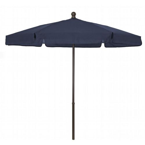 7.5' Hexagon Garden Umbrella 6 Rib Push Up & Pin Lift Champagne Bronze Frame with Valance Style Canopy in Navy Blue Vinyl Coated Weave. Designed with the home in mind, FiberBuilt's Garden Umbrella provides years of shaded comfort for your backyard patio, garden, or pool area. These light-duty, budget-friendly umbrellas can be used both in-table and freestanding. They are not designed for high wind locations or for commercial use. The valance style canopy is hexagonal in shape, available in 10 colors, and made of a durable Vinyl coated weave that partially protects from harmful sun rays. Features 6 flexible fiberglass ribs with molded nylon joints, hubs, and end tips that improve the umbrella's performance during adverse weather conditions.