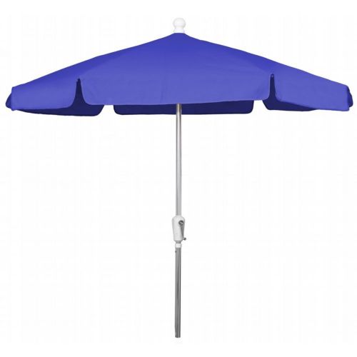 7.5' Hexagon Garden Umbrella 6 Rib Crank Lift Bright Aluminum Frame with Valance Style Canopy in Pacific Blue Vinyl Coated Weave. Designed with the home in mind, FiberBuilt's Garden Umbrella provides years of shaded comfort for your backyard patio, garden, or pool area. These light-duty, budget-friendly umbrellas can be used both in-table and freestanding. They are not designed for high wind locations or for commercial use. The valance style canopy is hexagonal in shape, available in 10 colors, and made of a durable Vinyl coated weave that partially protects from harmful sun rays. Features 6 flexible fiberglass ribs with molded nylon joints, hubs, and end tips that improve the umbrella's performance during adverse weather conditions.