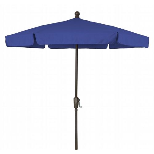 7.5' Hexagon Garden Umbrella 6 Rib Crank Lift Champagne Bronze Frame with Valance Style Canopy in Pacific Blue Vinyl Coated Weave. Designed with the home in mind, FiberBuilt's Garden Umbrella provides years of shaded comfort for your backyard patio, garden, or pool area. These light-duty, budget-friendly umbrellas can be used both in-table and freestanding. They are not designed for high wind locations or for commercial use. The valance style canopy is hexagonal in shape, available in 10 colors, and made of a durable Vinyl coated weave that partially protects from harmful sun rays. Features 6 flexible fiberglass ribs with molded nylon joints, hubs, and end tips that improve the umbrella's performance during adverse weather conditions.