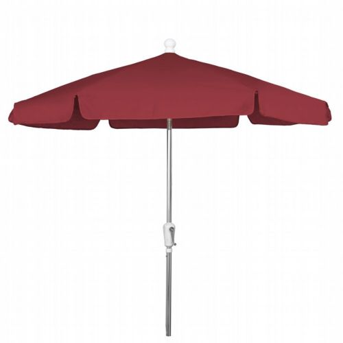 7.5' Hexagon Garden Umbrella 6 Rib Crank Lift & Push Button Tilt Bright Aluminum Frame with Valance Style Canopy in Red Vinyl Coated Weave. Designed with the home in mind, FiberBuilt's Garden Umbrella provides years of shaded comfort for your backyard patio, garden, or pool area. These light-duty, budget-friendly umbrellas can be used both in-table and freestanding. They are not designed for high wind locations or for commercial use. The valance style canopy is hexagonal in shape, available in 10 colors, and made of a durable Vinyl coated weave that partially protects from harmful sun rays. Features 6 flexible fiberglass ribs with molded nylon joints, hubs, and end tips that improve the umbrella's performance during adverse weather conditions.