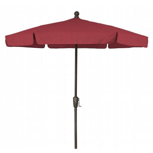 7.5' Hexagon Garden Umbrella 6 Rib Crank Lift Champagne Bronze Frame with Valance Style Canopy in Red Vinyl Coated Weave. Designed with the home in mind, FiberBuilt's Garden Umbrella provides years of shaded comfort for your backyard patio, garden, or pool area. These light-duty, budget-friendly umbrellas can be used both in-table and freestanding. They are not designed for high wind locations or for commercial use. The valance style canopy is hexagonal in shape, available in 10 colors, and made of a durable Vinyl coated weave that partially protects from harmful sun rays. Features 6 flexible fiberglass ribs with molded nylon joints, hubs, and end tips that improve the umbrella's performance during adverse weather conditions.