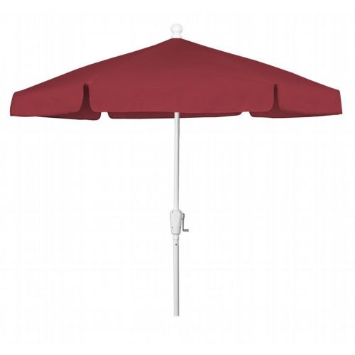 7.5' Hexagon Garden Umbrella 6 Rib Crank Lift White Frame with Valance Style Canopy in Red Vinyl Coated Weave. Designed with the home in mind, FiberBuilt's Garden Umbrella provides years of shaded comfort for your backyard patio, garden, or pool area. These light-duty, budget-friendly umbrellas can be used both in-table and freestanding. They are not designed for high wind locations or for commercial use. The valance style canopy is hexagonal in shape, available in 10 colors, and made of a durable Vinyl coated weave that partially protects from harmful sun rays. Features 6 flexible fiberglass ribs with molded nylon joints, hubs, and end tips that improve the umbrella's performance during adverse weather conditions.