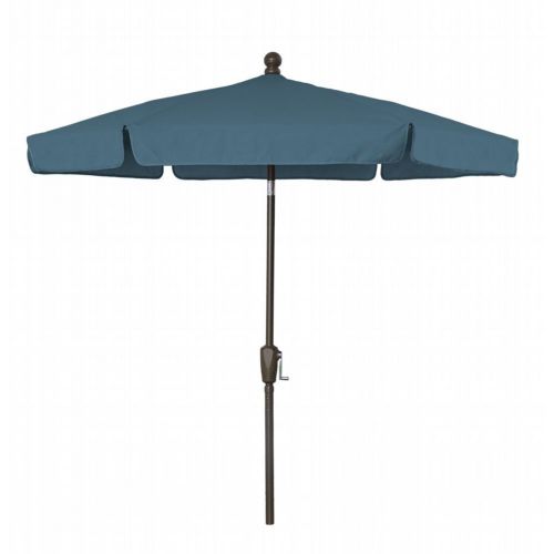 7.5' Hexagon Garden Tilt Umbrella 6 Rib Crank Lift & Push Button Tilt Champagne Bronze Frame with Valance Style Canopy in Teal Vinyl Coated Weave. Designed with the home in mind, FiberBuilt's Garden Umbrella provides years of shaded comfort for your backyard patio, garden, or pool area. These light-duty, budget-friendly umbrellas can be used both in-table and freestanding. They are not designed for high wind locations or for commercial use. The valance style canopy is hexagonal in shape, available in 10 colors, and made of a durable Vinyl coated weave that partially protects from harmful sun rays. Features 6 flexible fiberglass ribs with molded nylon joints, hubs, and end tips that improve the umbrella's performance during adverse weather conditions.