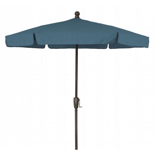 7.5' Hexagon Garden Umbrella 6 Rib Crank Lift Champagne Bronze Frame with Valance Style Canopy in Teal Vinyl Coated Weave. Designed with the home in mind, FiberBuilt's Garden Umbrella provides years of shaded comfort for your backyard patio, garden, or pool area. These light-duty, budget-friendly umbrellas can be used both in-table and freestanding. They are not designed for high wind locations or for commercial use. The valance style canopy is hexagonal in shape, available in 10 colors, and made of a durable Vinyl coated weave that partially protects from harmful sun rays. Features 6 flexible fiberglass ribs with molded nylon joints, hubs, and end tips that improve the umbrella's performance during adverse weather conditions.
