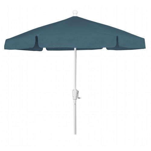 7.5' Hexagon Garden Umbrella 6 Rib Crank Lift White Frame with Valance Style Canopy in Teal Vinyl Coated Weave. Designed with the home in mind, FiberBuilt's Garden Umbrella provides years of shaded comfort for your backyard patio, garden, or pool area. These light-duty, budget-friendly umbrellas can be used both in-table and freestanding. They are not designed for high wind locations or for commercial use. The valance style canopy is hexagonal in shape, available in 10 colors, and made of a durable Vinyl coated weave that partially protects from harmful sun rays. Features 6 flexible fiberglass ribs with molded nylon joints, hubs, and end tips that improve the umbrella's performance during adverse weather conditions.