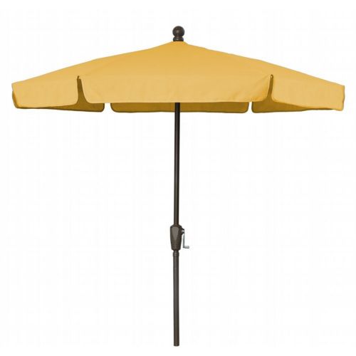 7.5' Hexagon Garden Umbrella 6 Rib Crank Lift Champagne Bronze Frame with Valance Style Canopy in Yellow Vinyl Coated Weave. Designed with the home in mind, FiberBuilt's Garden Umbrella provides years of shaded comfort for your backyard patio, garden, or pool area. These light-duty, budget-friendly umbrellas can be used both in-table and freestanding. They are not designed for high wind locations or for commercial use. The valance style canopy is hexagonal in shape, available in 10 colors, and made of a durable Vinyl coated weave that partially protects from harmful sun rays. Features 6 flexible fiberglass ribs with molded nylon joints, hubs, and end tips that improve the umbrella's performance during adverse weather conditions.