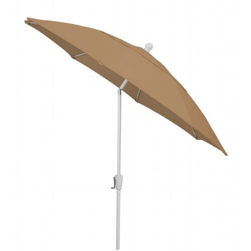 9' Octagon Patio Tilt Umbrella 8 Rib Crank Lift & Push Button Tilt White Frame with Beige Solution Dyed Poly Canopy. Designed for residential use, FiberBuilt's Patio Umbrella provides durable shaded comfort for your backyard patio, garden, or pool area. These light-duty, budget-friendly umbrellas can be used both in-table and freestanding. They are not designed for high wind locations or for commercial use. The Market style solution dyed poly canopy is available in 6 colors and has excellent UV resistance to sunlight. Features 6 flexible fiberglass ribs with molded nylon joints, hubs, and end tips that improve the umbrella's performance during adverse weather conditions.