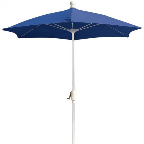 7.5 feet diameter fiberglass 6 ribbed patio umbrella with spun acrylic fabric top. Hexagon patio umbrella has a powder coated aluminum 2 piece pole with crank lift. Pole has two pieces. Umbrella has a heavy-duty crank. Umbrella top has 6 ribs. Fiber glass ribs have molded nylon joints and end tips. Fiberglass patio umbrellas withstand high winds and resistant to harsh weather. Umbrella stand sold separately.